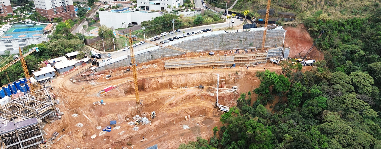 Execução de parede diafragma com hidrofresa e jet grouting.