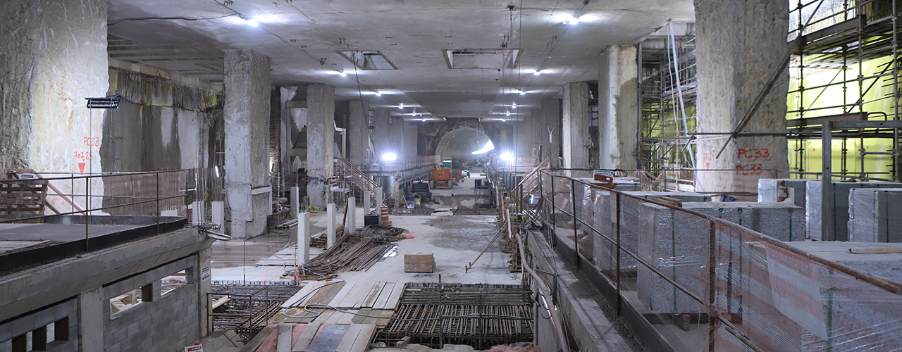 Execução de Contenção da Estação com Parede de Diafragma com Hidrofresa.